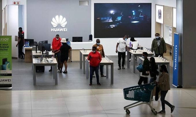 Bên ngoài một cửa hàng Huawei tại trung tâm mua sắm Sandton City ở Sandton (Nam Phi) ngày 16/2. Ảnh: Reuters