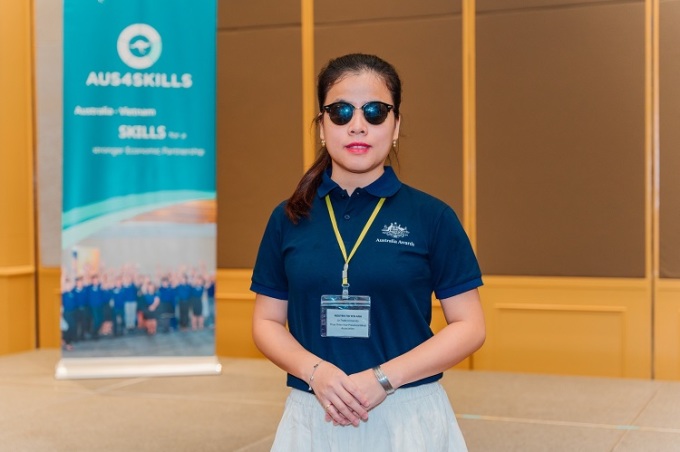 Yến Anh có mặt tại lễ Chào mừng các cựu sinh viên Học bổng chính phủ Australia (AAS) hôm 19/8 tại Hà Nội. Ảnh: Aus4Skills