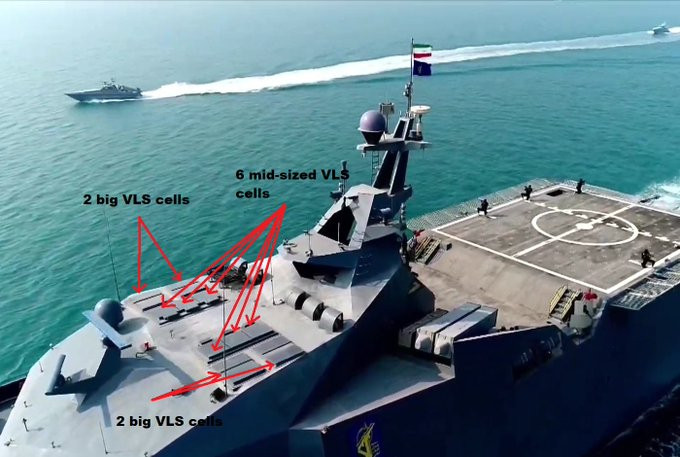 Các ống phóng tên lửa thẳng đứng trên tàu Shahid Soleimani. Ảnh: Twitter
