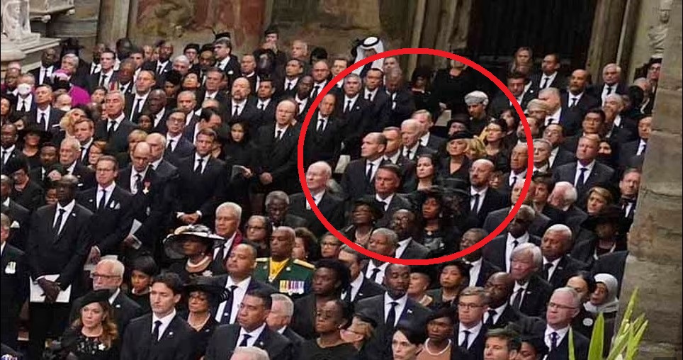 Vị trí ngồi của ông Biden trong lễ tang Nữ hoàng Anh Elizabeth II khiến nhiều người chú ý. Ảnh: DM