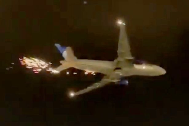 Chiếc máy bay phát tia lửa giữa không trung. Ảnh: Twitter