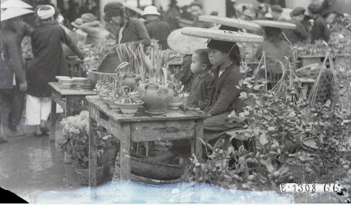Hình ảnh chợ hoa ngày Tết của người Hà Nội xưa. Ảnh: TL.