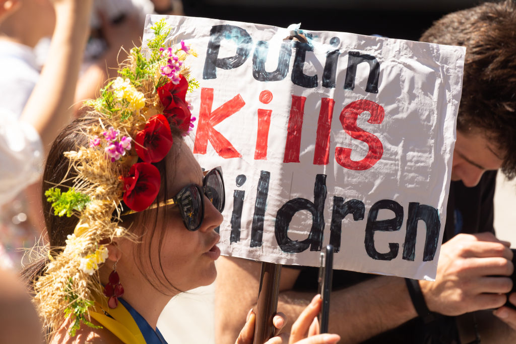Suốt hơn nửa năm qua, người dân khối EU nói chung và người Đức nói riêng liên tục biểu t́nh chống Putin (Ảnh: một cuộc biểu t́nh tại Dueseldorf, Đức (Ying,Tang/NurPhoto via Getty Images)