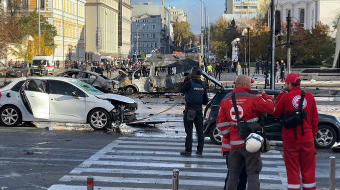 Những thiệt hại trên đường phố Kiev, Ukraine sau các vụ tập kích sáng 10/10. Ảnh: AFP.
