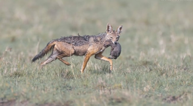 Ateeb Hussain cho biết: "Đây là khoảng thời gian diễn ra cuộc di cư hàng năm của linh dương đầu bò, chúng tôi không thể bỏ lỡ và đã đến vào buổi sáng. Nhận được thông tin về một con báo và cuộc chiến tiềm tàng gần đó nên chúng tôi đang trên đường đến đó. Trên đường đi, chúng tôi phát hiện một con chó rừng mẹ đang chạy, miệng giữ chặt đứa con nhỏ. Chúng tôi dừng lại ở khoảng cách vừa phải và quan sát khi người hướng dẫn giải thích rằng gia đình chó rừng đang di chuyển tìm nơi ở mới".
