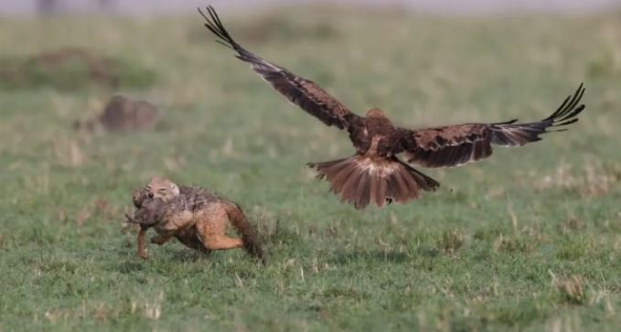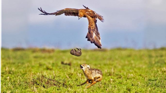 Chó mẹ liều mình cứu con bị đại bàng bắt cóc. Ateeb Hussain, 38 tuổi, đã may mắn chứng kiến và ghi lại toàn bộ khoảnh khắc tuyệt vời hiếm thấy trong tự nhiên khi đi tham quan Khu bảo tồn quốc gia Maasai Mara, Kenya. Khoảnh khắc đúng lúc đúng vị trí hiếm hoi xảy ra trong Khu bảo tồn quốc gia Maasai Mara khi một con chó mẹ liều mạng cứu con bị đại bàng bắt cóc.