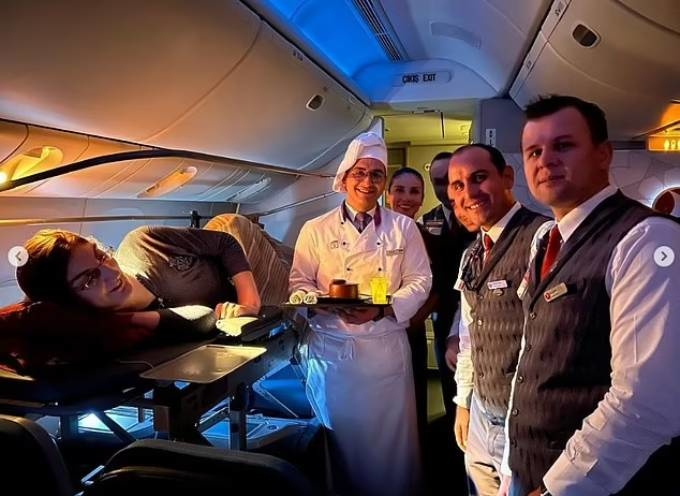Gelgi được phục vụ tận tình trong chuyến bay đầu tiên. Ảnh: Instagram Rymeysa Gelgi