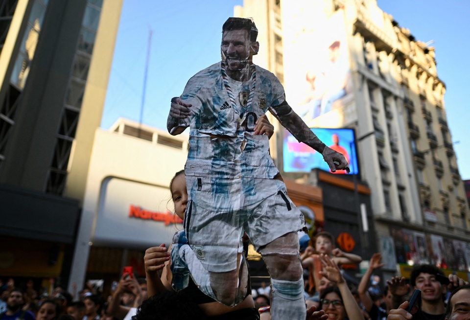 Người hâm mộ Argentina ăn mừng với hình ảnh Messi ở Buenos Aires. Ảnh: Reuters.
