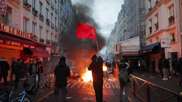Hình ảnh trực tiếp từ BFMTV, chi nhánh của CNN, cũng như các hãng tin Reuters và AFP cho thấy đường phố bị hư hại và khói bốc lên từ xe hơi khi người biểu tình đụng độ với cảnh sát.