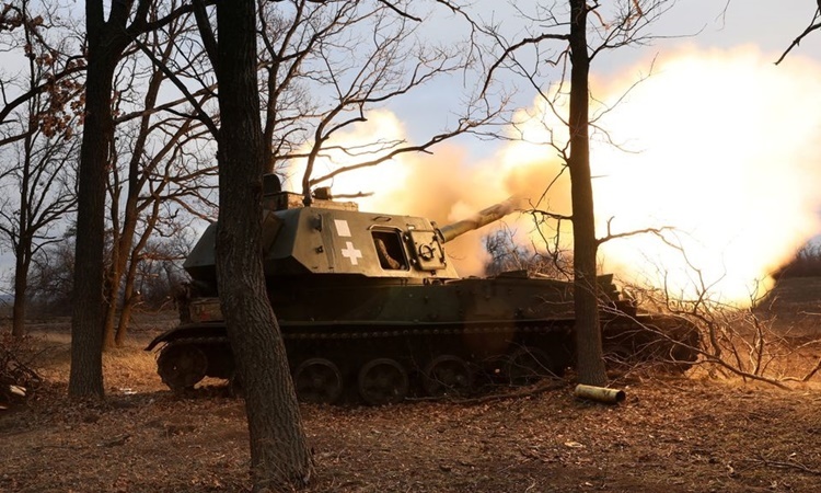 Lữ đoàn Cơ giới số 24 của quân đội Ukraine bắn pháo về phía lực lượng Nga gần Bakhmut, miền đông nước này, hôm 3/12. Ảnh: Reuters.