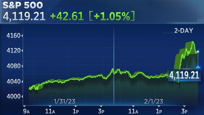Chỉ số S&P 500 tăng 1,05% lên mức 4.119,21 điểm sau khi giảm gần 1% ở đầu phiên ngày 1/2. Ảnh: CNBC