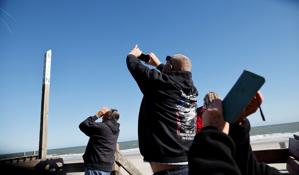 Người dân chụp lại cảnh khinh khí cầu Trung Quốc bay ngoài khơi bờ biển Surfside, Nam Carolina, hôm 4/2. Ảnh: Randall Hill/Reuters.