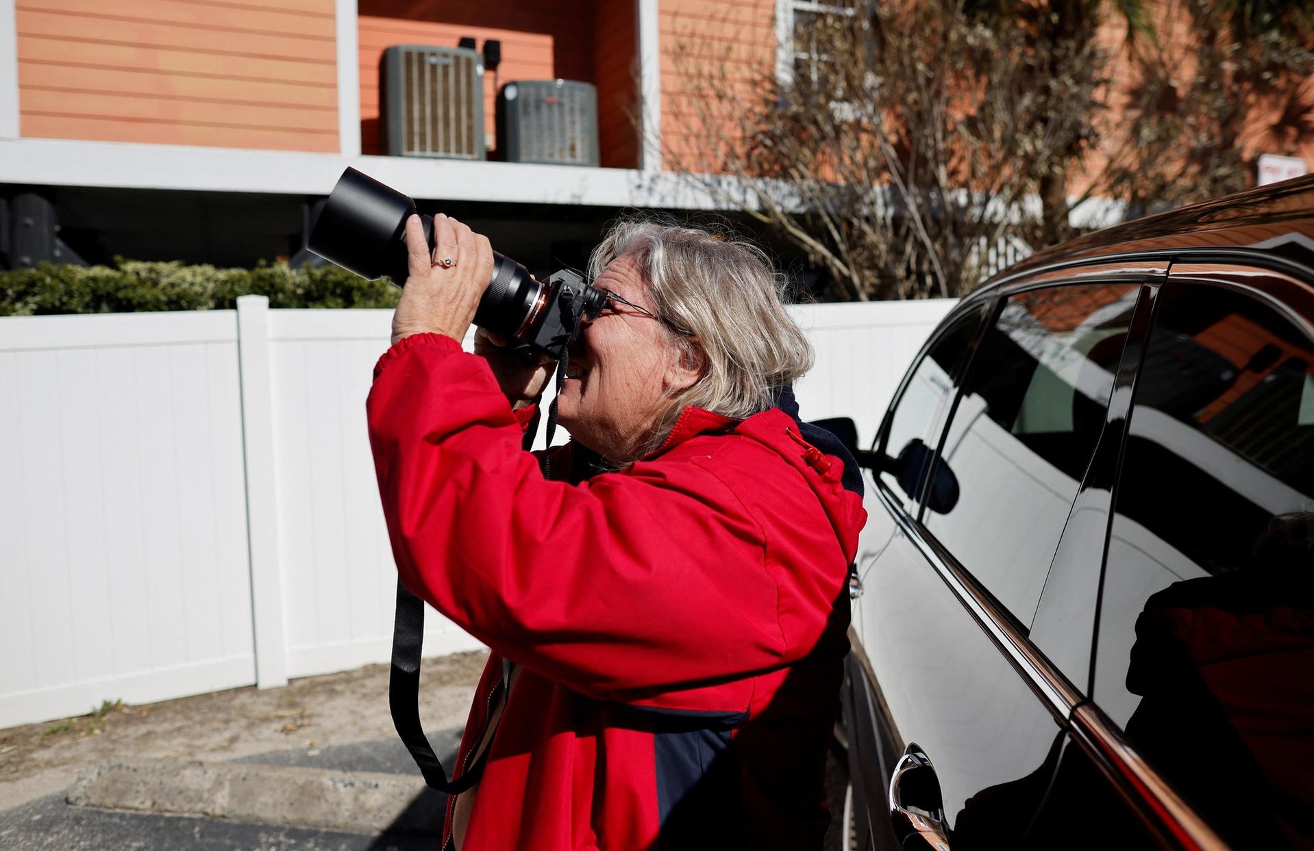Một người dân chụp lại h́nh ảnh khinh khí cầu tại Nam Carolina. Ảnh: Reuters.