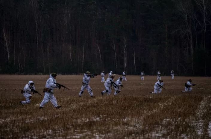 Các quân nhân Ukraine tham gia khóa huấn luyện quân sự chung ở vùng Rivne, gần biên giới với Belarus. Ảnh: Getty