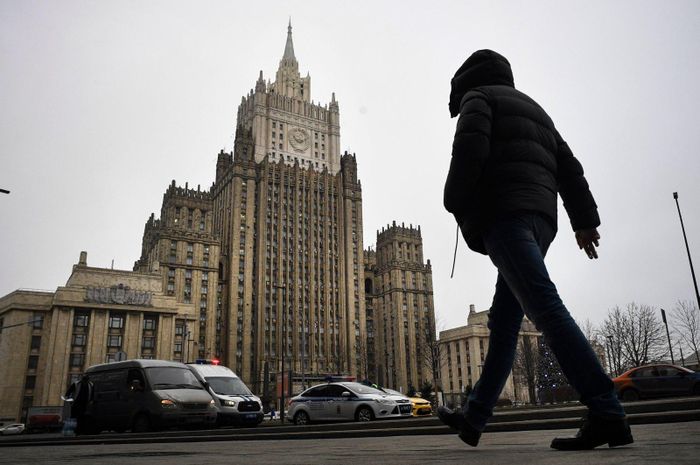 Một người đàn ông đi qua trụ sở Bộ Ngoại giao Nga. Ảnh tư liệu: AFP