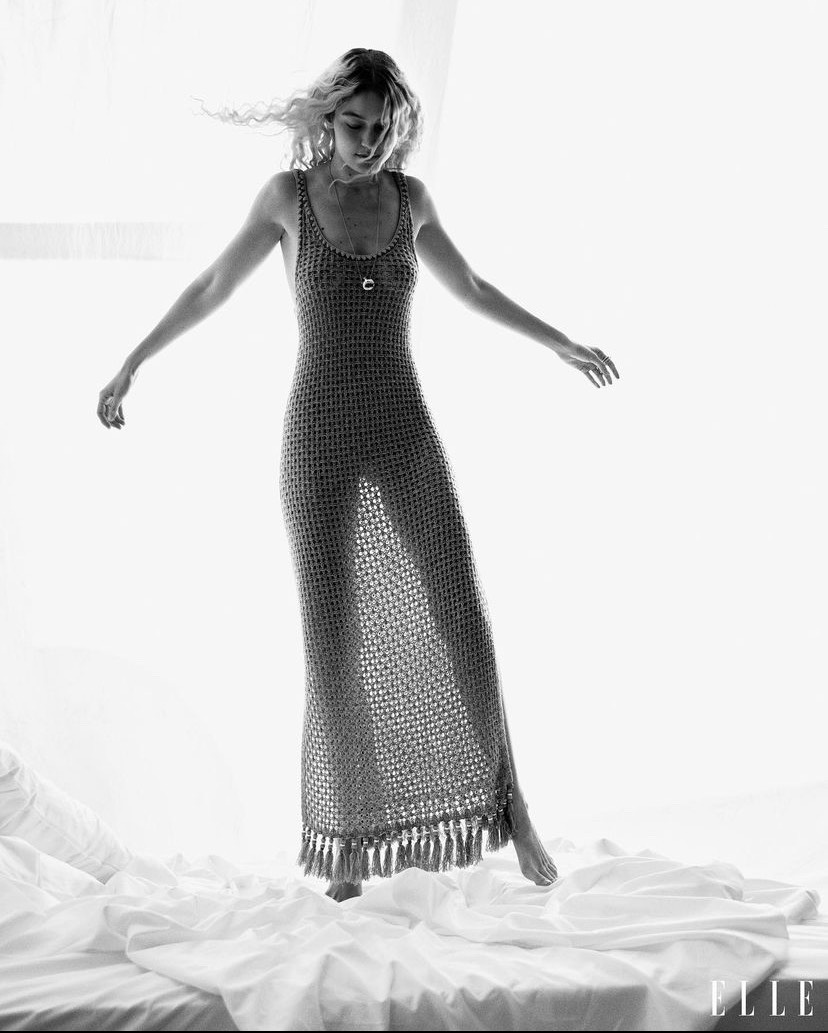 Gigi Hadid khoe đường cong cơ thể trong trang phục lưới, dệt kim trên trang bìa Elle. Ảnh: @