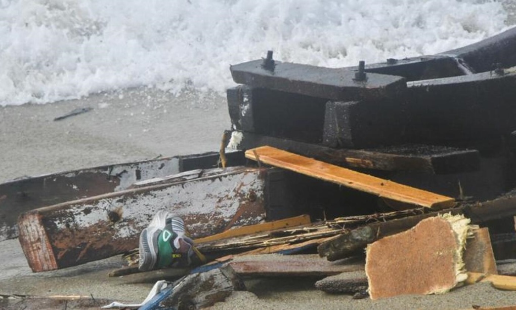 Xác con thuyền dạt vào bờ biển Italy. Ảnh: AP.
