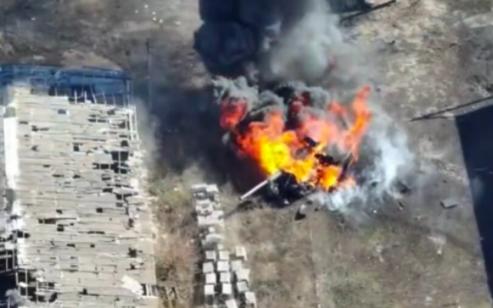 Súng cối tự hành khổng lồ 2S4 Tyulpan của Nga bốc cháy ngùn ngụt. Nguồn Twitter/Defence.