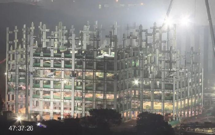 Điều đáng chú ý là tốc độ xây dựng của tòa nhà đạt mức kỷ lục với việc hoàn thành 03 tầng mỗi ngày. Khoảng 1.200 công nhân được huy động làm việc hết công suất không kể ngày đêm.