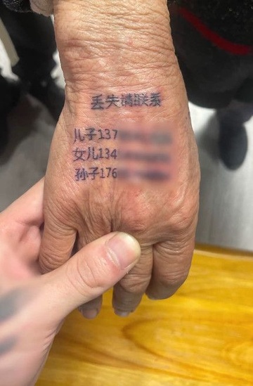 Cặp đôi ép mẹ già 80 tuổi xăm hình. Tại Trung Quốc, một người phụ nữ cao tuổi, mắc chứng mất trí nhớ bị các con đưa đến tiệm xăm để ghi lại "vĩnh viễn" số điện thoại gia đình trên tay.