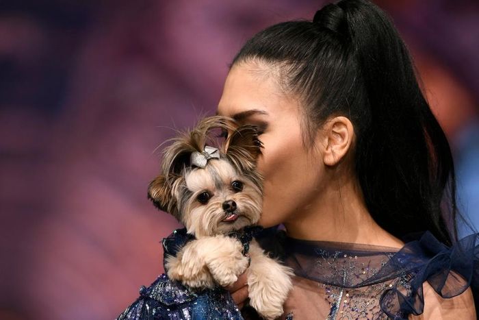 Tại show diễn này, con người chỉ là phông nền, minh họa cho thú cưng. Theo Guardian, váy áo dành cho chó mèo được nhà tạo mẫu này bán ra với mức giá đắt đỏ, lên tới 10.000 USD/sản phẩm.