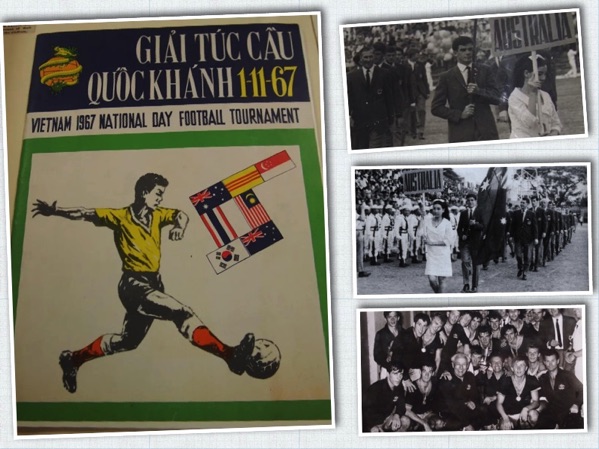 Trong số những điểm đến của họ có Việt Nam. Cần lưu ý chi tiết quan trọng: ở Việt Nam khi đó đang có chiến tranh. Đội tuyển Úc đến một cách đường đột, giữa sự bảo vệ của hàng ngàn binh sỹ. Họ nhận được lời khuyên từ Đại sứ quán: Tránh xa những người đi xe đạp (bởi họ có thể là Việt Cộng đang mang theo chất nổ), và tránh xa người Mỹ (vì đó thường là mục tiêu của các cuộc tấn công). Bác sỹ của đội bóng còn đưa ra thêm lời khuyên: “Đừng uống nước ở đây. Chất lượng nước luôn rất đáng ngờ. Tốt nhất là nên uống bia." Và rồi người Úc thi đấu trên một sân bóng nằm ngay cạnh bãi mìn, đánh bại New Zealand, rồi thi đấu với VNCH ở giải giao hữu các quốc gia - với những tấm poster được chuẩn bị từ trước như trong ảnh.