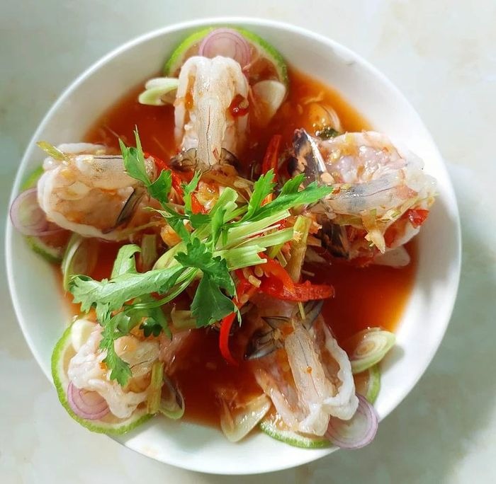 "Với độ axit cao của chanh và ớt sẽ được chín tái một phần món tôm sống, cũng giảm bớt nỗi lo sán hoặc vi sinh vật có hại trong thực phẩm sống"- anh Dương nói.