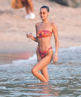 Mới đây, những hình ảnh Bella Hadid diện monokini cut-out ở eo khoe khéo thân hình chuẩn mẫu. Hình ảnh nhanh chóng nhận được lượng tương tác cao trên MXH. Dưới phần bình luận, nhiều người tấm tắc khen ngợi body mảnh mai, quyến rũ của cô nàng.