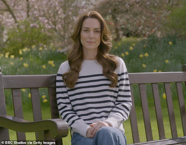 Hình ảnh Kate trong đoạn video thông báo về tình hình sức khỏe của mình với công chúng