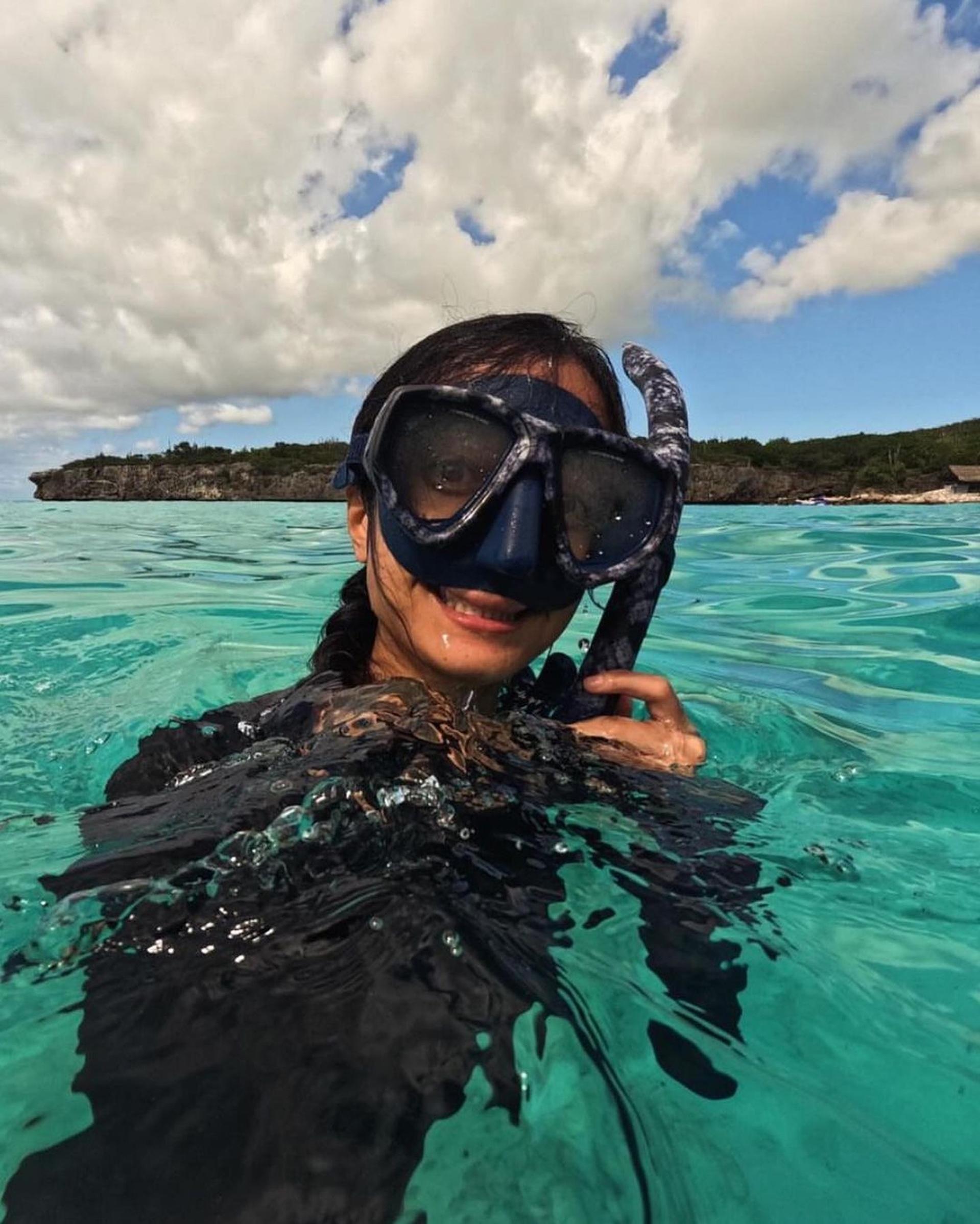 Syasya Syahirah Nor Azmi đang dành những ngày dài bất tận để chèo thuyền, câu cá và ngâm ḿnh trong làn nước trong vắt của vùng biển Caribe.