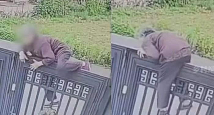 Hình ảnh đoạn clip cho thấy, bà cụ đã khéo léo bám hai tay lên phía trên cổng rồi từ từ trèo qua và thoát ra ngoài. Toàn bộ sự việc diễn ra chỉ trong vòng 24 giây và đã được camera giám sát ghi lại.