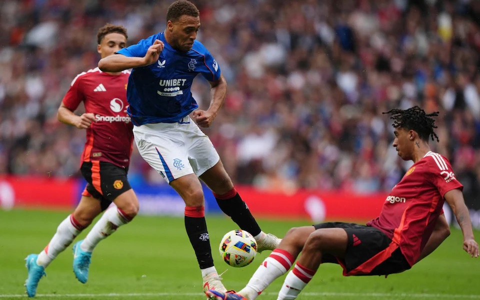Đồng hồ điểm phút thứ 10 trên sân Murrayfield (Edinburgh, Scotland), trận giao hữu giữa Rangers và Manchester United tối 20/7, trung vệ Yoro có pha tắc bóng chính xác ngăn chặn Cyriel Dessers. Đây là tình huống tân binh 52 triệu bảng của “Quỷ đỏ” ở kỳ chuyển nhượng hè 2024 cho thấy tốc độ và sức mạnh trong lúc theo kèm đối thủ.