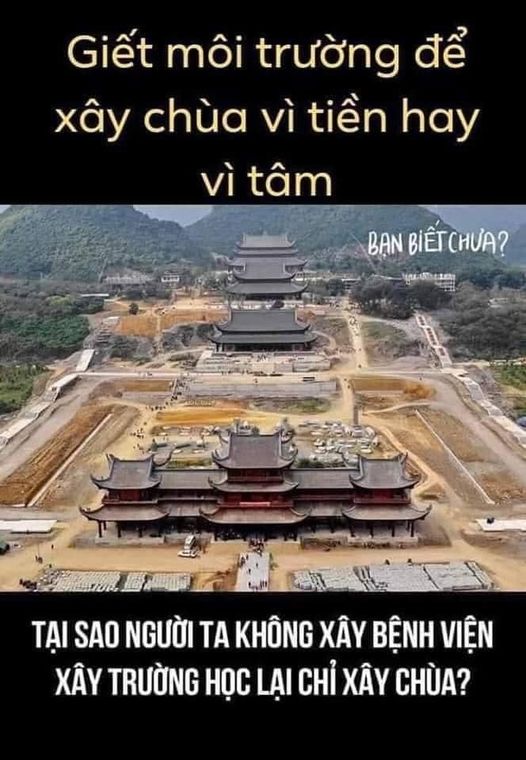 Nghe nói những chùa chiền có giá trị tâm linh cao như Bái Đính, Chùa Hương, Trúc Lâm Yên Tử... đều được giao cho các doanh nghiệp đại gia, nâng cấp mở rộng thành những "khu du lịch tâm linh", thực ra đó là những cỗ máy in tiền , là nơi rửa tiền nuôi lũ đội lốt đầu trọc và nhóm lợi ích quan chức đứng sau.