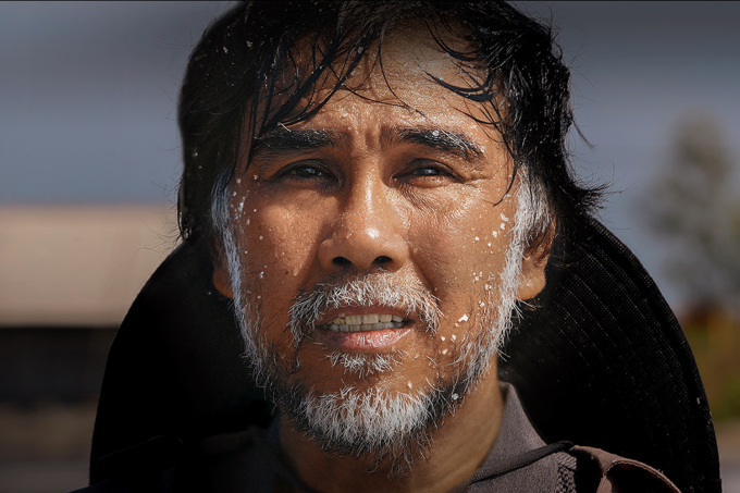 Để tạo hình đạt độ chân thật như tiêu chí đạo diễn, nghệ sĩ không hóa trang mà nuôi râu tóc trong sáu tháng. Anh nhờ vợ - chị Dạ Thảo - cùng các con lên chế độ dinh dưỡng nhiều rau, áp dụng để giảm từ hơn 100 kg xuống còn 70 kg. Diễn viên về ấp đảo Thiềng Liềng (Cần Giờ, TP HCM) tìm hiểu cuộc sống diêm dân, học kinh nghiệm hóa thân vào vai người đàn ông mưu sinh bằng nghề làm muối.