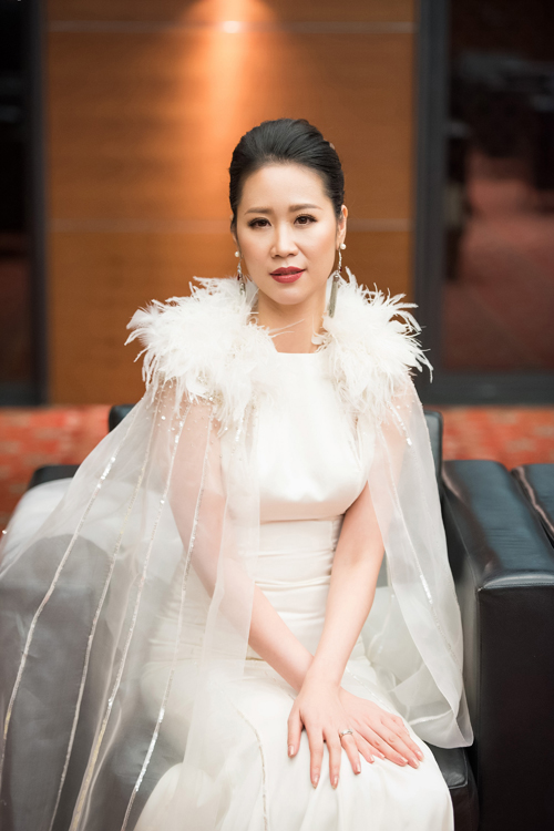 Trong chương trình, 'gái một con' thay hai bộ đầm khác nhau của NTK Xuân Lê, khoe vóc dáng thon thả. Dù đã ngoài 30 tuổi nhưng cô vẫn giữ được nhan sắc trẻ trung.