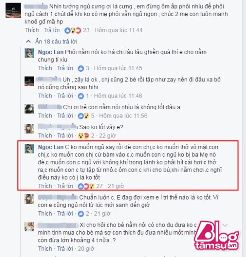 Cô chia sẻ: “Tính mẹ xưa giờ đã hay lo rồi, nhiều khi chuyện có chút xíu mà mẹ lo riết nó thành bự chà bá, giờ có con mẹ còn lo hơn nữa”. Thậm chí “1 vết đỏ trên da con thôi cũng làm mẹ suy nghĩ cả đêm”. Chính vì sự bất an, phiền lòng cả ngày lẫn đêm thế này cho nên dù được chồng chăm sóc tận tình, Ngọc Lan vẫn không thế thấy thoải mái, vui vẻ.
