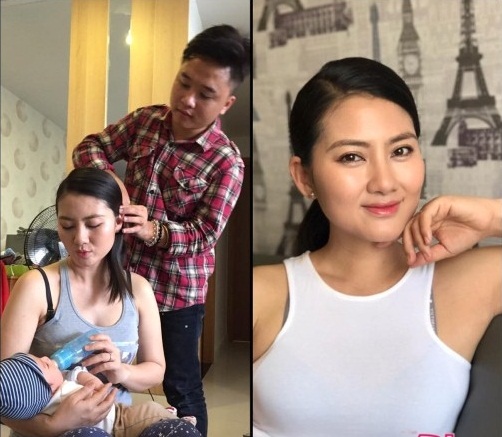 Old  Arrow Thanh Bình chăm chút bà xã Ngọc Lan sau sinh