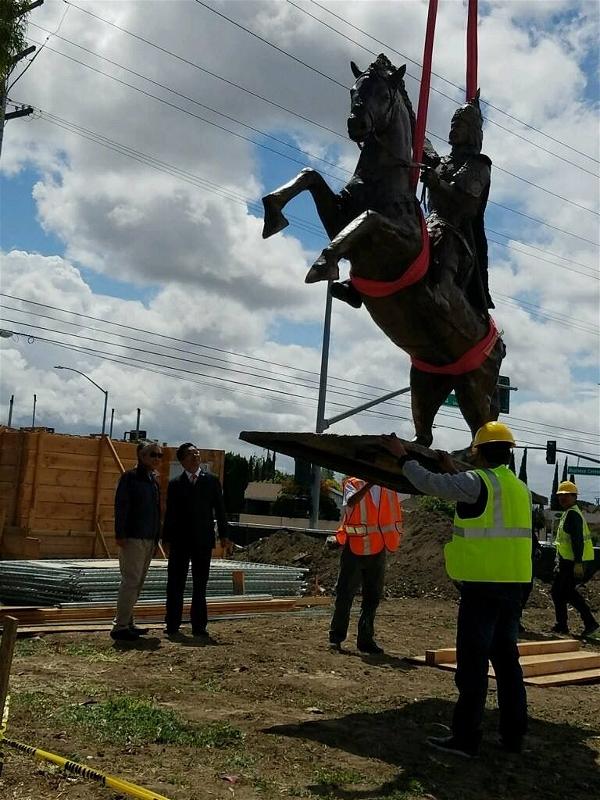 Garden Grove (VB) -- Theo tin từ nhà văn Đặng Phú Phong, Phó Ủy Ban Xây Dựng Tượng Đài Vua Quang Trung, cho biết: Sau 2 ngày vận chuyển từ Austin Texas, lúc 10:30 sáng chủ nhật 7 tháng 5 năm 2017, Tôn tượng Đại Đế Quang Trung đã được đưa về tại địa chỉ 14291 Eulid St., Garden Grove, CA 92843, nơi đang tiến hành việc xây dựng tượng đài của ngài.