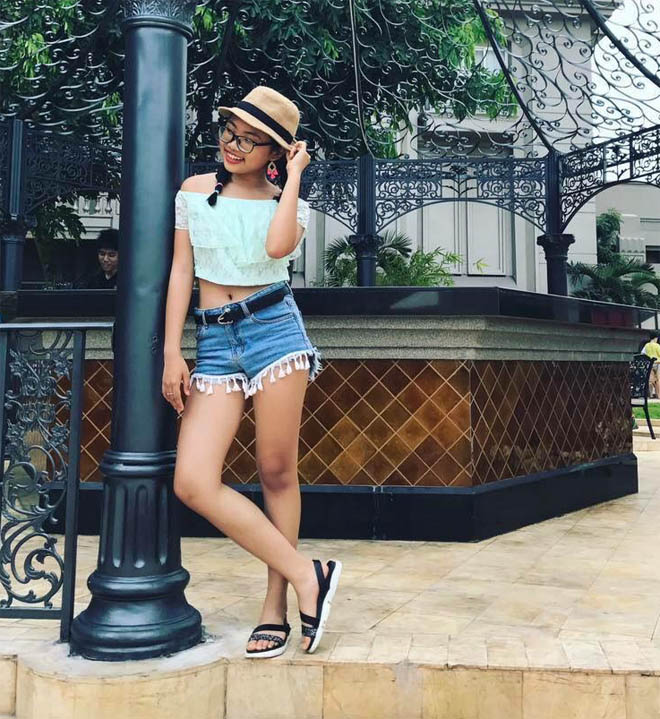 Khác với hình ảnh đen nhẻm, bình dị, ngây thơ trước đây, chị Bảy đã dần ra dáng thiếu nữ và bắt đầu ăn mặc sành điệu. Trong chuyến đi biển Vũng Tàu cùng gia đình, Phương Mỹ Chi không chỉ diện áo crop top, quần short ngắn mà còn có cách tạo dáng rất chuyên nghiệp trước ống kính.