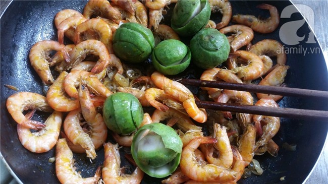 Khi tôm chuyển màu thì cho sấu vào đảo cùng.