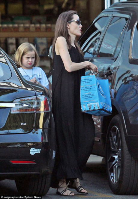 Angelina Jolie xuất hiện rạng rỡ khi đi mua sắm với con gái út Vivienne.