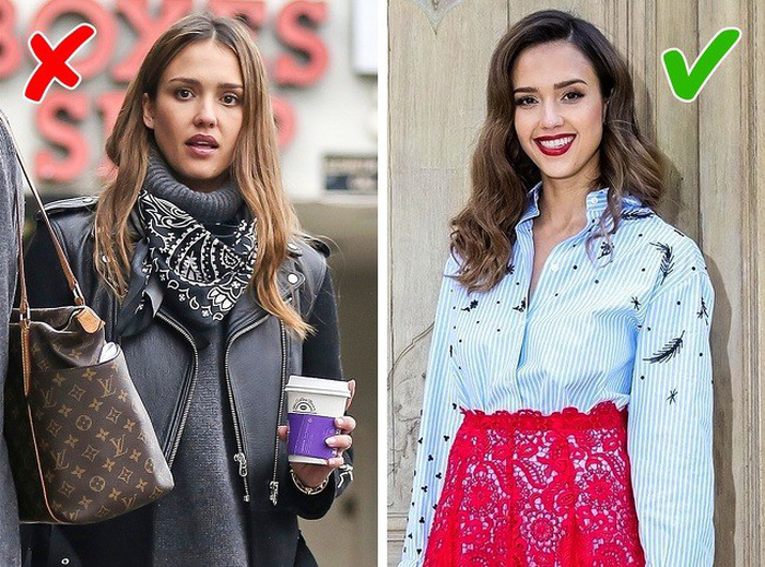 4. Khăn quàng: Quàng khăn khiến bạn trông già đi, vì vậy hãy tránh xa, trừ khi trời gió lạnh. Cổ mở luôn mang lại cảm giác trẻ trung năng động.