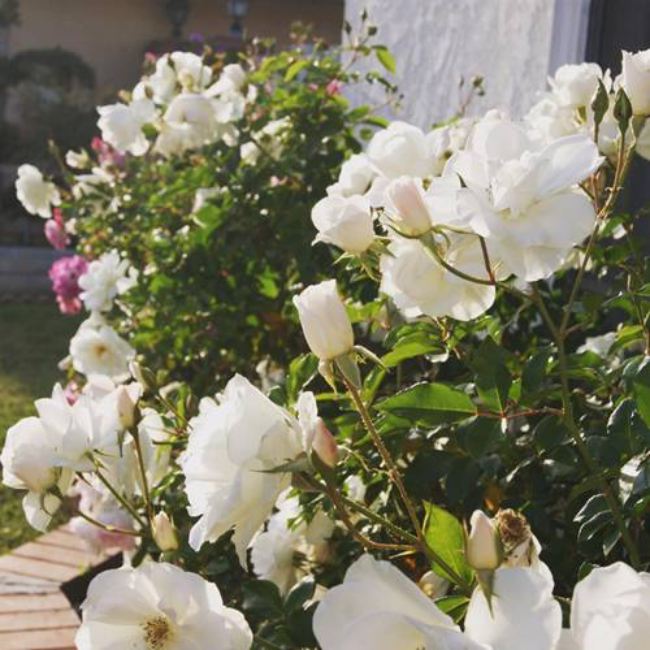 Kim Hiền còn tận dụng góc sân vườn ngập sắc hoa để chụp hình mỗi lúc rảnh rỗi. Đây chính là cách để cô giải toả căng thẳng mỗi khi có dịp.
