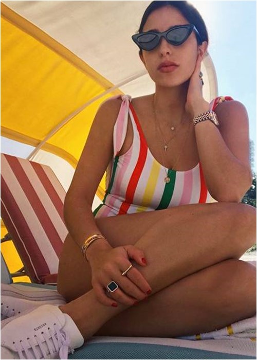 Áo tắm với họa tiết kẻ sọc cầu vồng mang tới nét trẻ trung và phá cách
