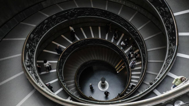 Du khách đi trên cầu thang hình xoắn ốc trong bảo tàng Vatican ở thành phố Vatican, Italia.