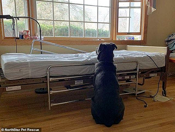 Chó Moose ngồi đợi bên cạnh giường bệnh của chủ nhân. Ảnh: NorthStar Pet Rescue.