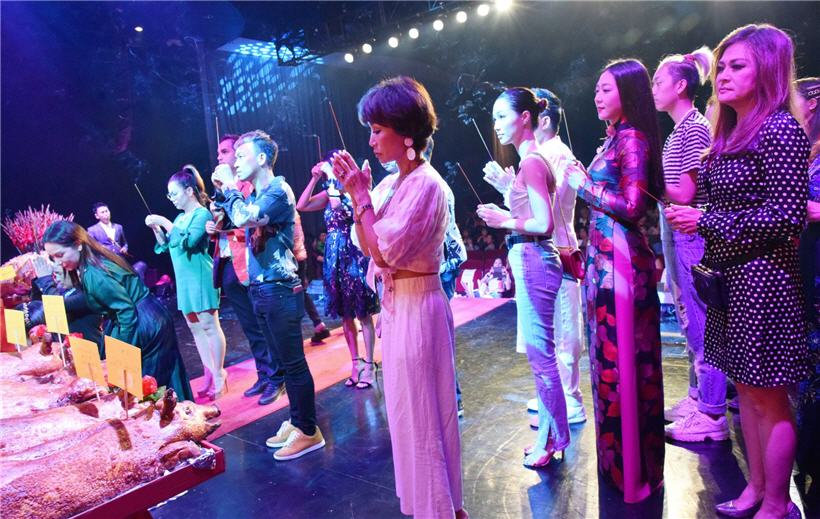 Cùng với giới nghệ sĩ ca nhạc, c̣n có cả những MC, giới người mẫu, nhạc công, những người phục vụ sân khấu, ban nhạc Hoàng Nghĩa và cổ nhạc Văn Hoàng cũng lên cúng tổ.