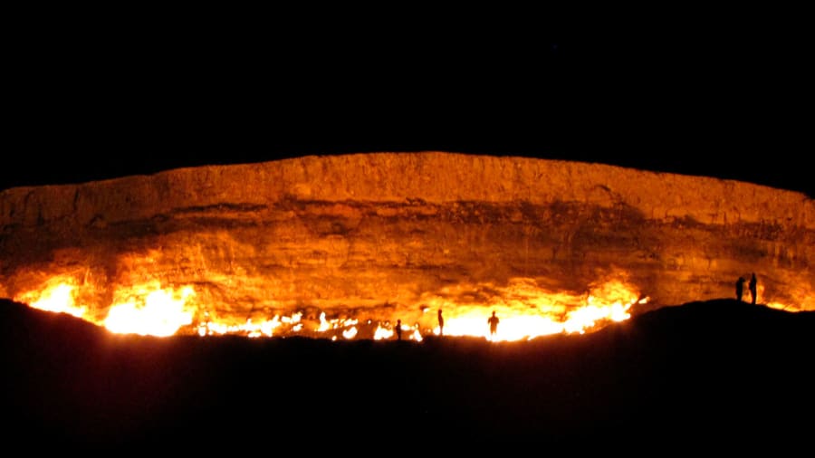 Đây là một miệng núi lửa sâu trong sa mạc Turkmenistan, nơi lửa vẫn đang ngùn ngụt cháy trong suốt 40 năm qua. Được gọi là miệng núi lửa Darvaza, những cảnh tượng ấn tượng này khiến nó còn có biệt danh là “cổng vào địa ngục”.