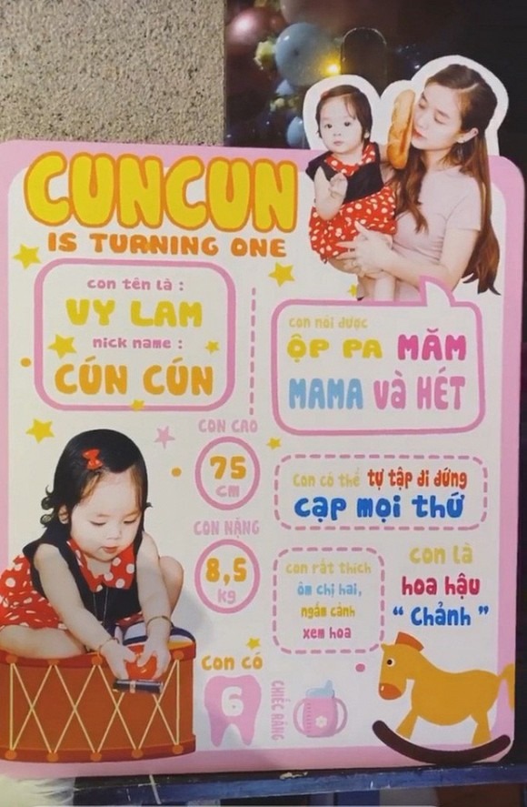 Được biết vào ngày 1/11 vừa qua khi bé Cún chính thức tròn 1 tuổi, trên trang cá nhân, Bảo Ngọc đã đăng tải đoạn clip chính thức công khai diện mạo con gái út. Từ những khoảnh khắc trong clip dễ dàng nhận thấy, con gái Hoài Lâm sở hữu toàn bộ nét xinh xắn từ cả bố lẫn mẹ.