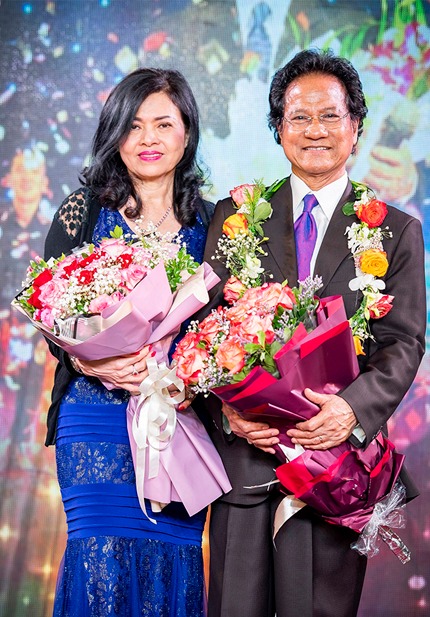 Chế Linh bên bà xã Vương Nga trong sinh nhật ông hồi tháng 4. Ảnh: LC.